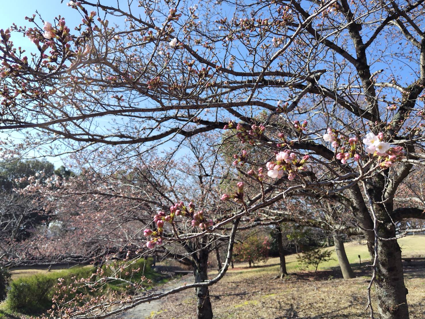やわらかな春の日差しのもと、淡いピンクの花が少しずつほころび始め、これから見頃に向けて美しさを増していきます。現在はつぼみと開花が混ざり合う、春の訪れを感じられる時期です。